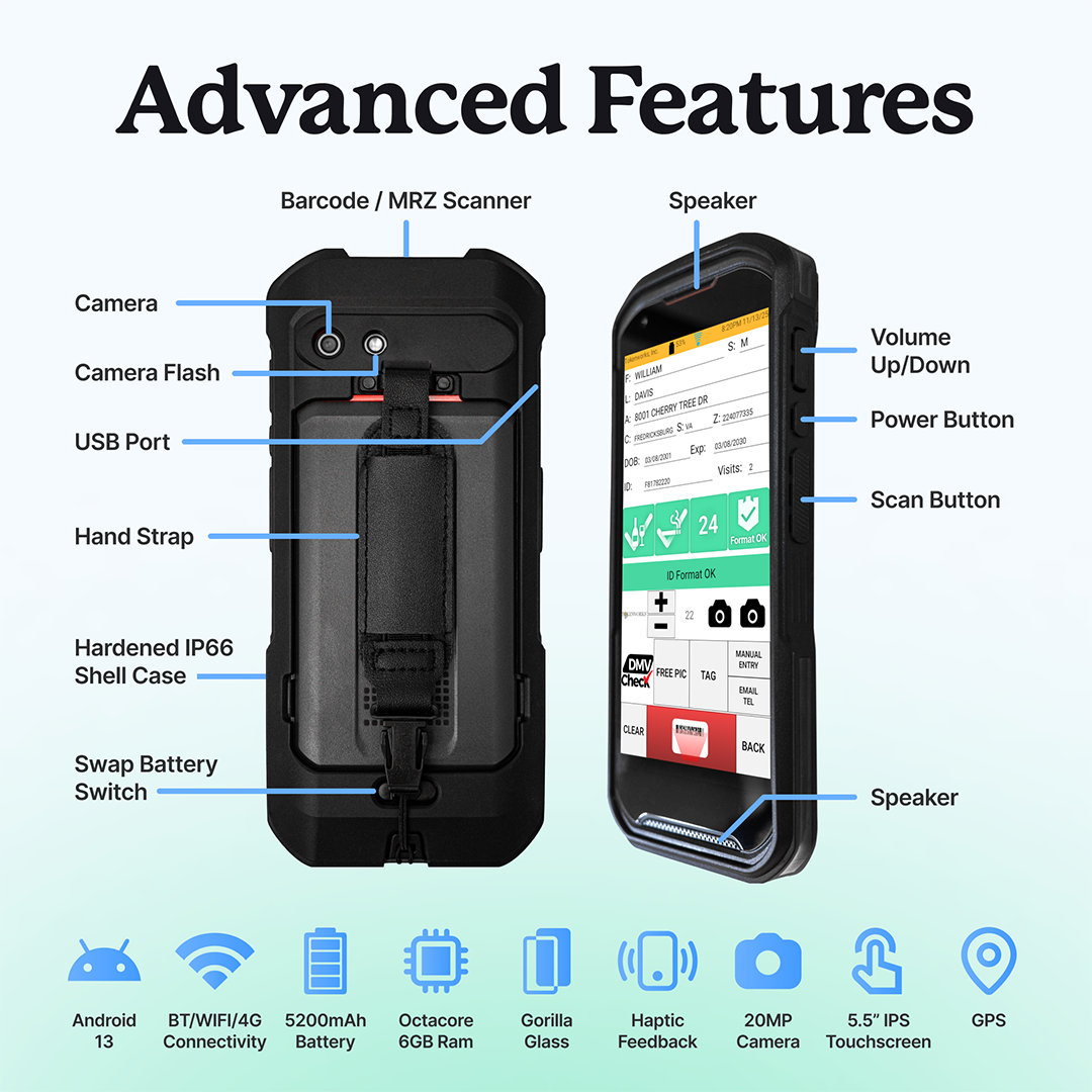 Banned Patron Alerts (tagging)Tag any ID with a custom tag, description and expiration date. (i.e., VIP, Banned, Member, Owes Money).
